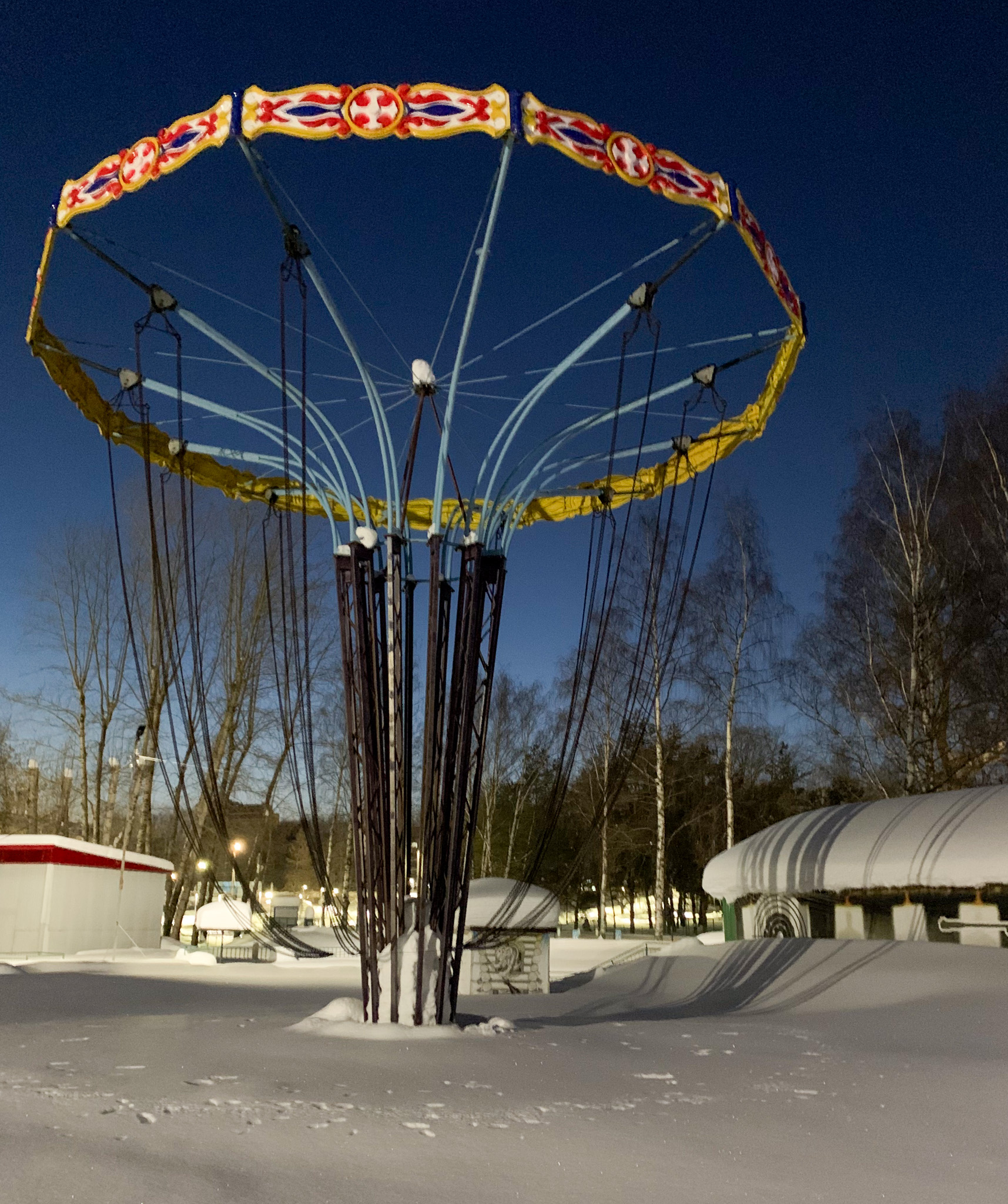 In 2 months, children's voices and laughter should be heard in this place, and these attractions should start working. However, everything is covered with a thick layer of snow, and the attractions are currently in storage.