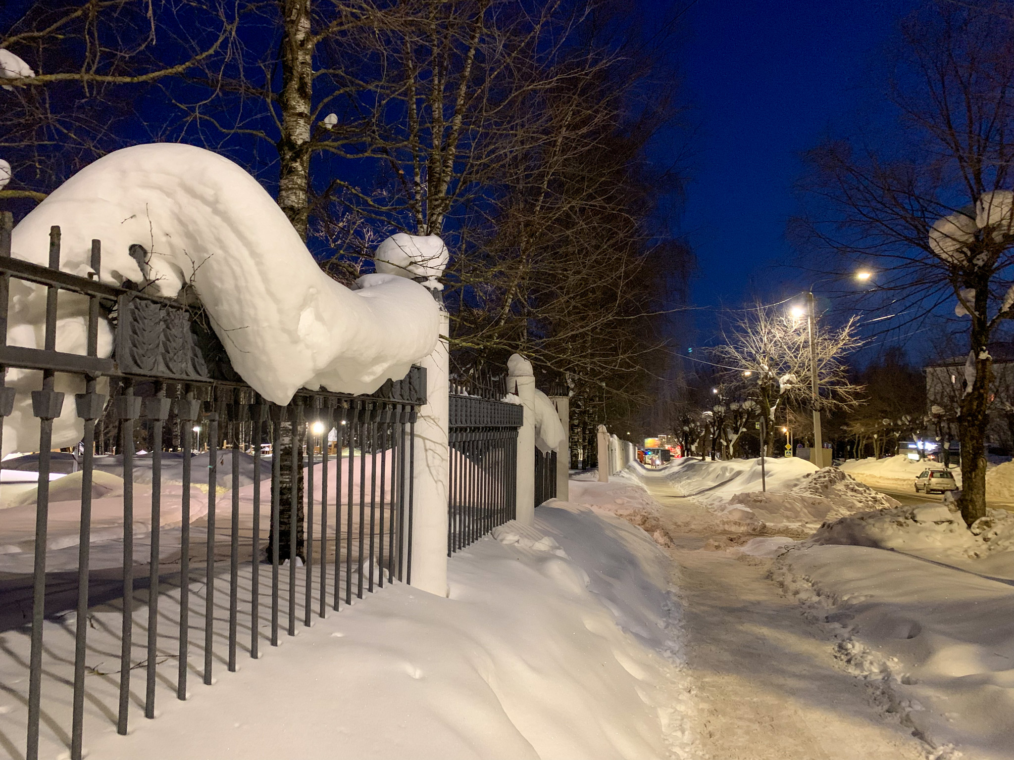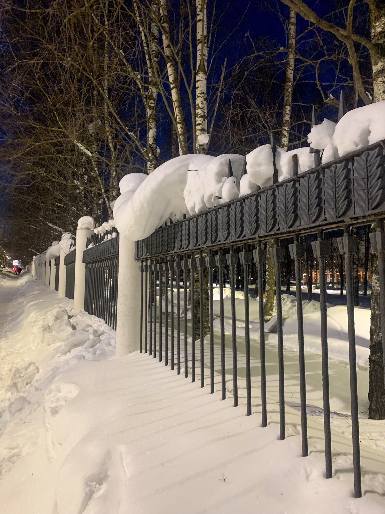 And here are such snow caps can be seen on the fence, trees, on electric poles, and on other similar structures. The most terrible, when such snow caps hang on the edge of the roofs or canopies, and they are ready to fall on the heads of passers-by. Every year in the city, someone dies because of the collapse of snow from the roof.