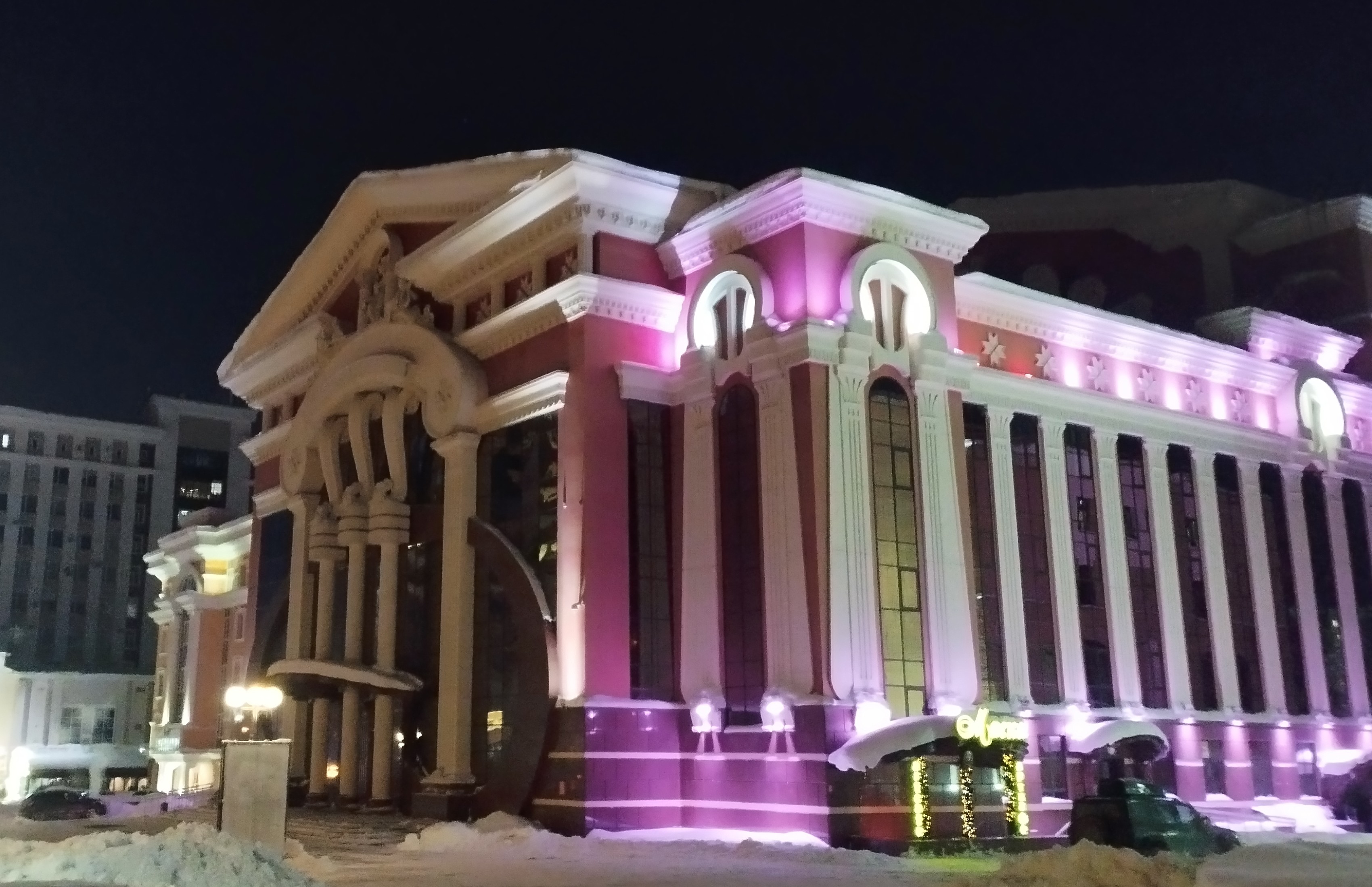 After what my walk continued. At the evening time city center of Saransk is beautiful decorated with festive lights on old buildings. As example I'd like to show you this old building in which located Mordovian republic children choreographic school