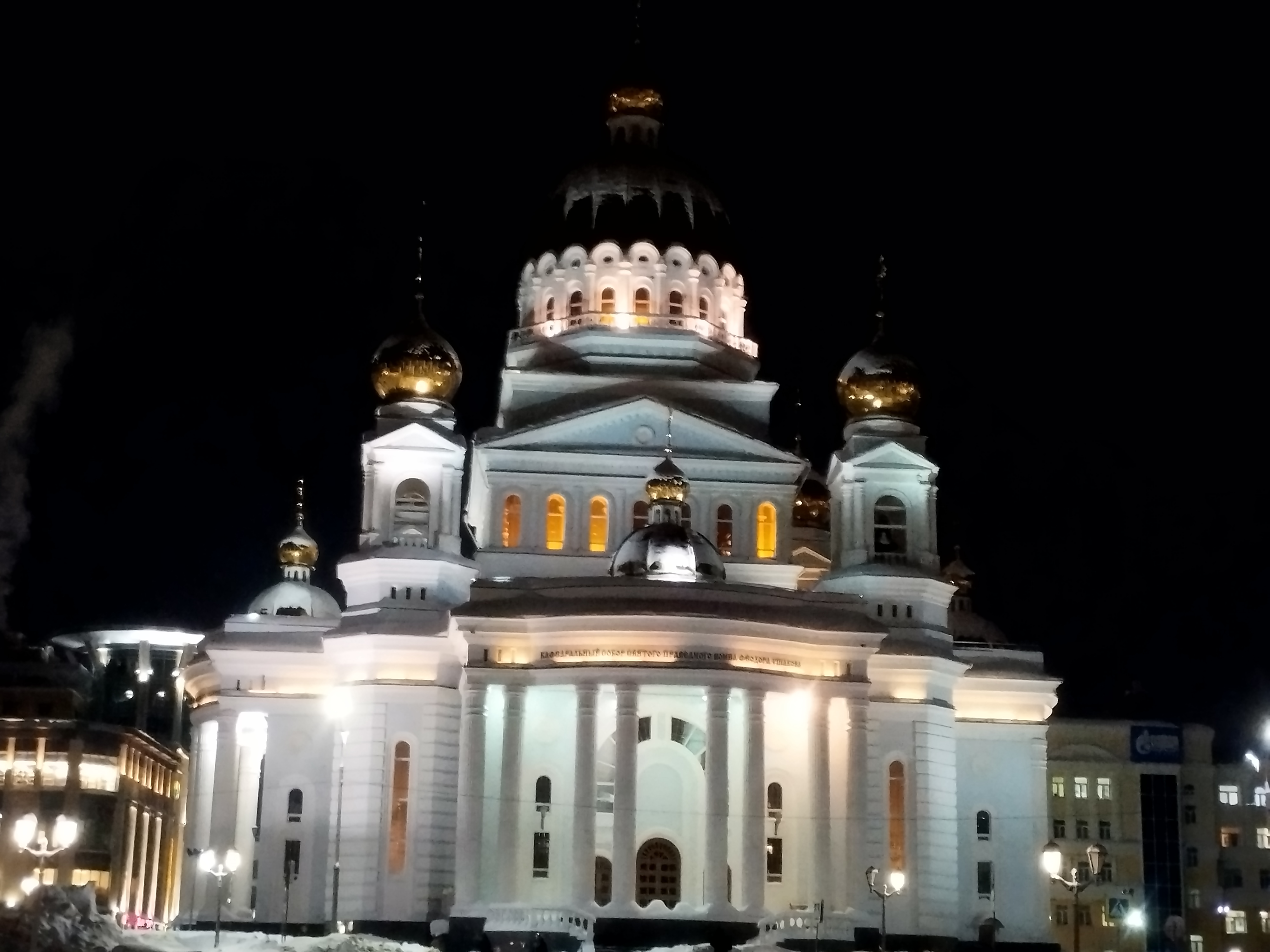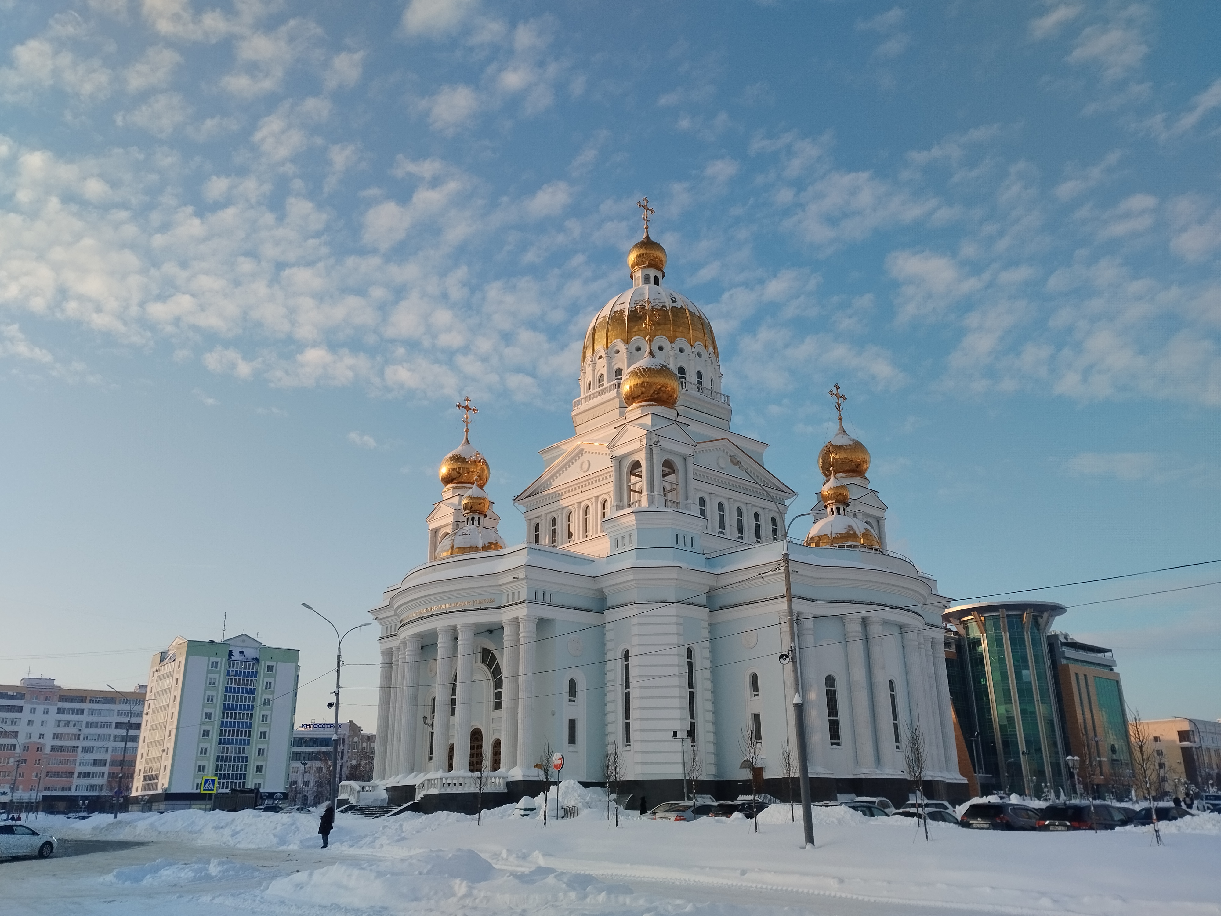 Behind the Soviet square located Fedor Ushakov Cathedral a Russian Orthodox cathedral in the Saransk, the Cathedral of the Diocese of Saransk. It is named for Russian saint and admiral Fyodor Ushakov.