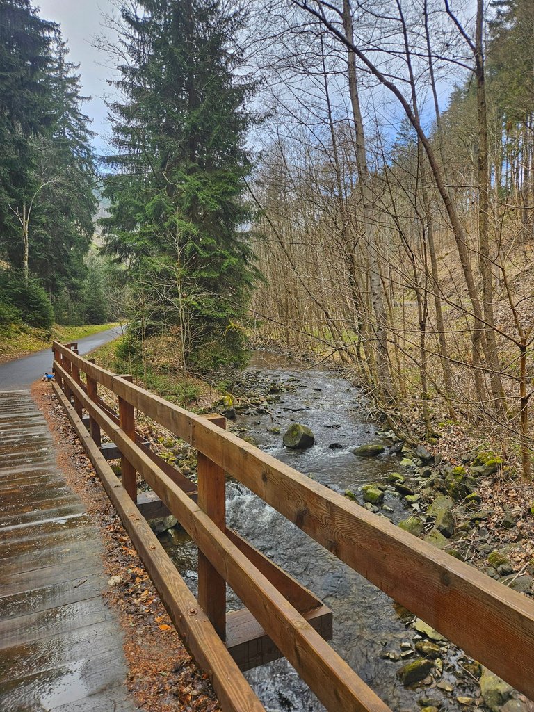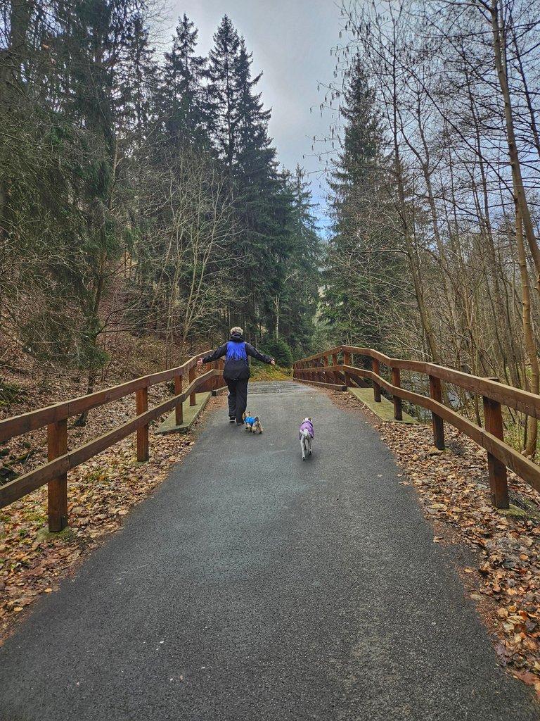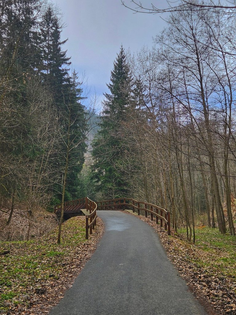 We walked to the reservoir directly from our accommodation along a newly built bike path that runs alongside the Chomutovka River and crosses several wooden bridges.